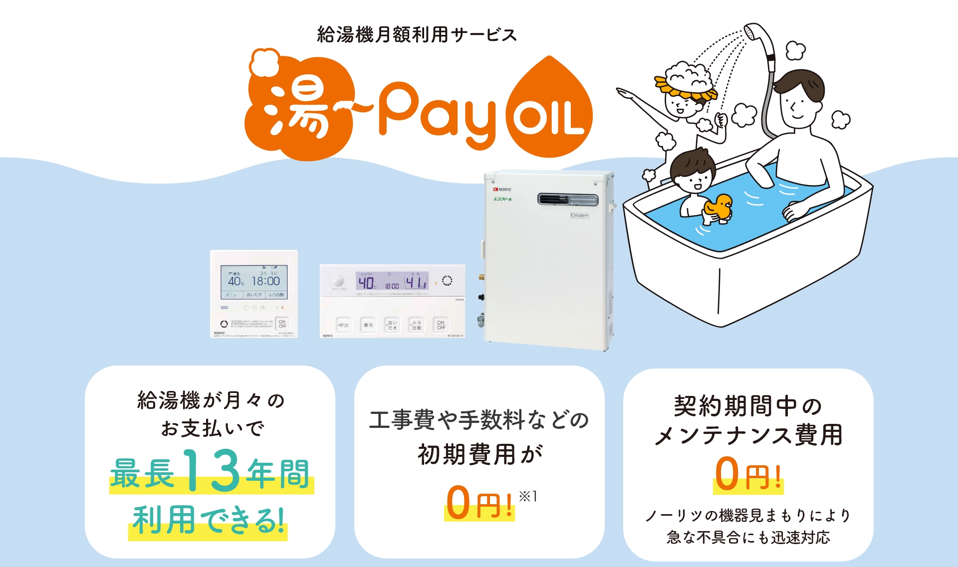 最長13年間給湯機をご利用いただけるサービスです。